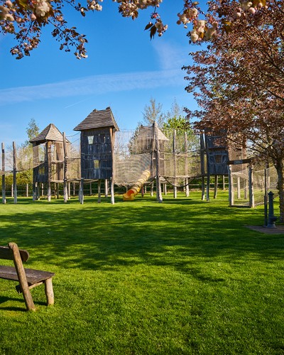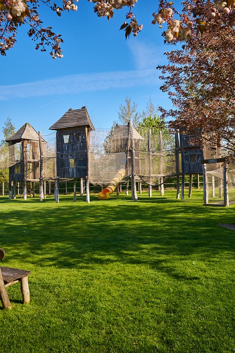 Těšit se můžete na dominantní lanový hrad a zábavné dětské hřiště před bistrem.