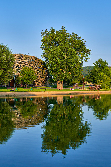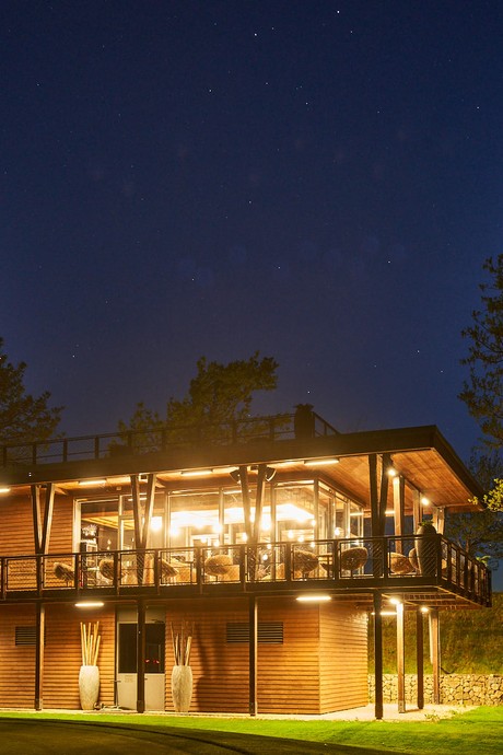 An unconventional glass meeting space measuring 9.5×5.5 metres with a height of 4 metres. It is also suitable for various celebrations. Operation is limited seasonally.