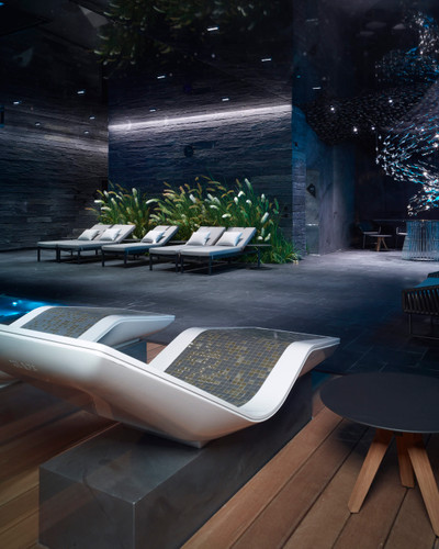 Unikátně navržená masážní lehátka přímo ve vyhřívaném bazénu se postarají o dokonalou relaxaci celého vašeho těla.