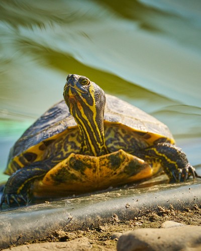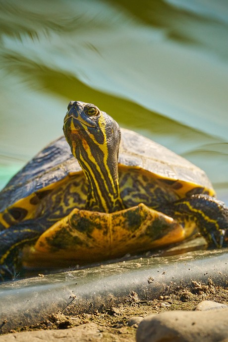 Společně u nás žijí želvy dvě a když svítí sluníčko, tak se rády vyhřívají na břehu. Ale pozor! Tento druh patří mezi invazivní druhy zvířat.