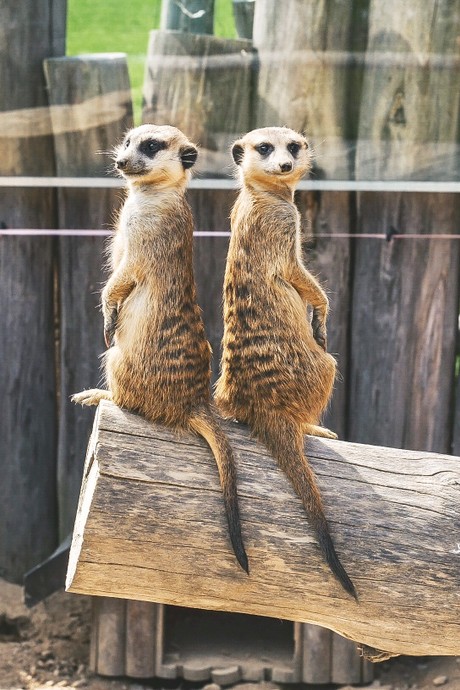 Surikaty si na hlídky vybírají vyvýšená místa, kde stojí vzpřímeně neboli panáčkují. Žijí v početných skupinách, kde je vždy jeden dominantní pár.