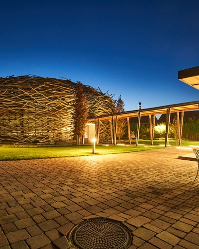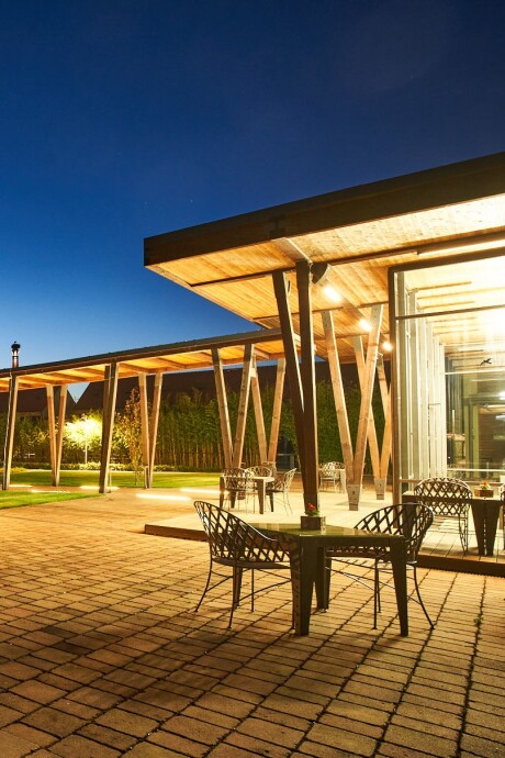 An unconventional glass meeting space measuring 9.5×5.5 metres with a height of 4 metres. It is also suitable for various celebrations. Operation is limited seasonally.